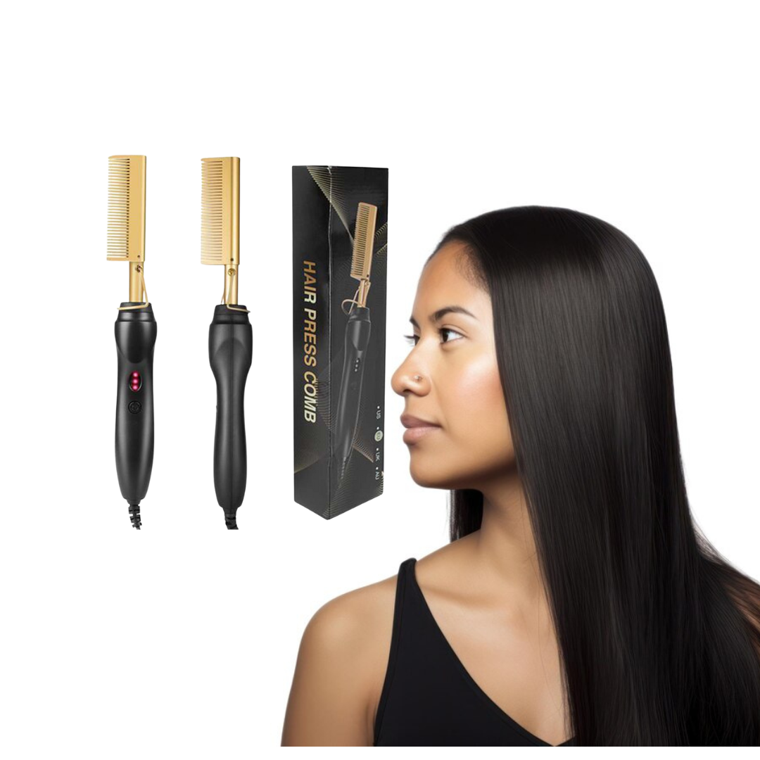 🔥 Peigne Chauffant Électrique 2-en-1 – Lissage Express, Résultat Pro !