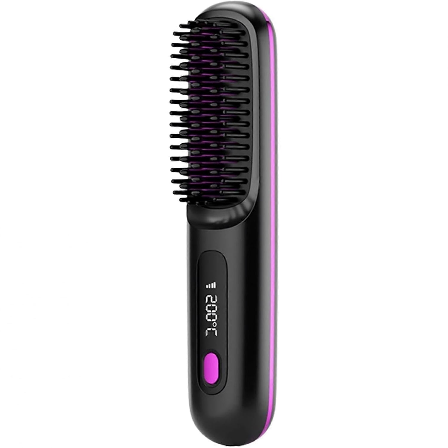 Peigne Lissant Électrique Sans Fil – Brosse Chauffante Céramique à Ions Négatifs avec Écran LCD, Rechargeable par USB