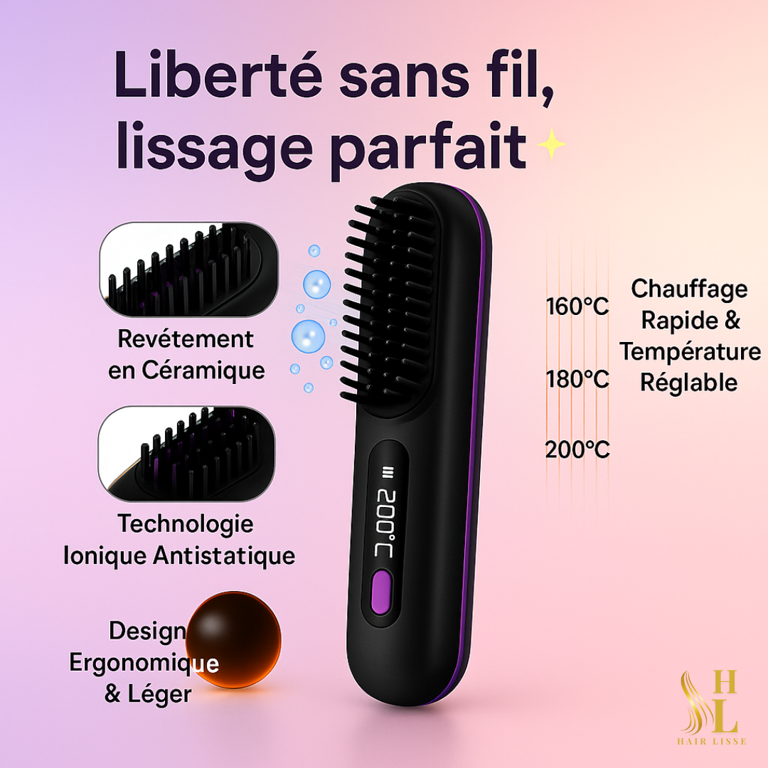 HairLisse – Brosse Lissante Sans Fil à Ions Négatifs | Lissage Rapide & Brillance Instantanée ✨