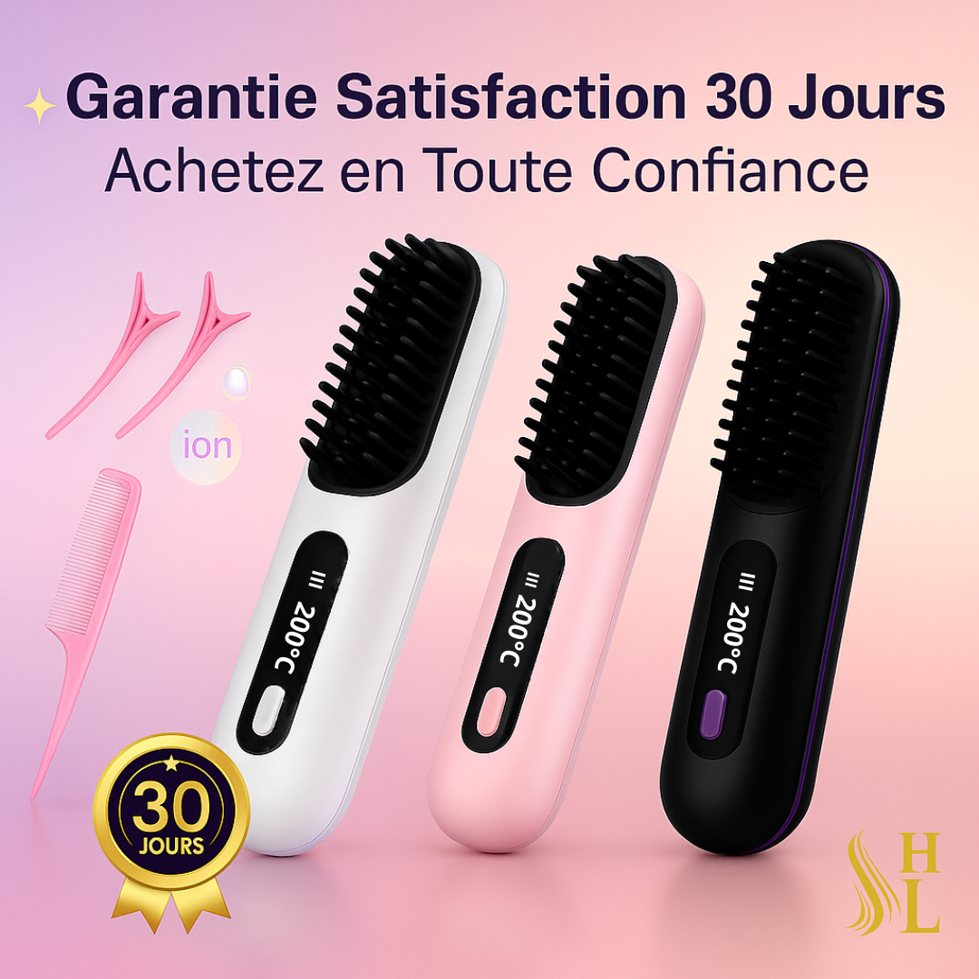 ✅ Garantie 1 an : Votre brosse lissante sans fil est couverte contre tout défaut de fabrication ou problème technique.