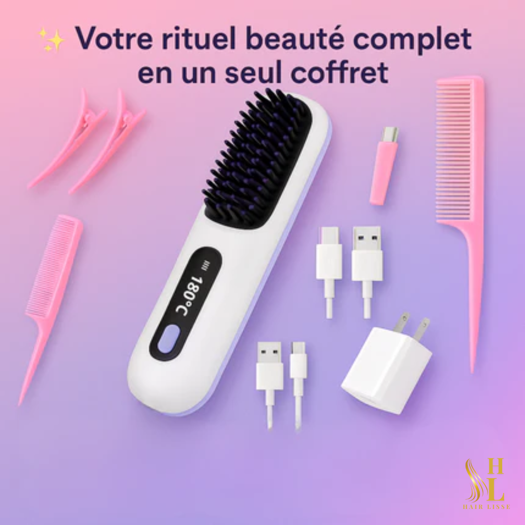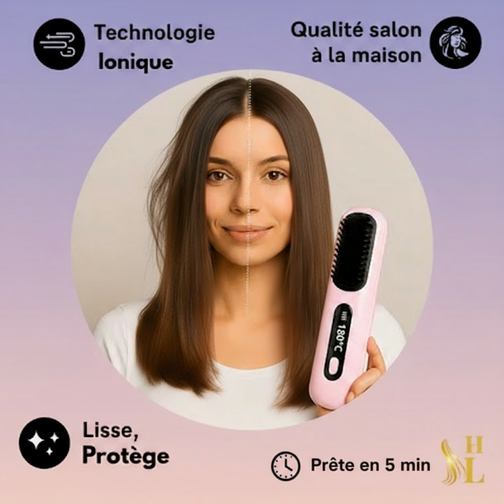 Découvrez comment HairLisse transforme votre routine capillaire avec sa brosse lissante sans fil — rapide, pratique et respectueuse de vos cheveux 💕