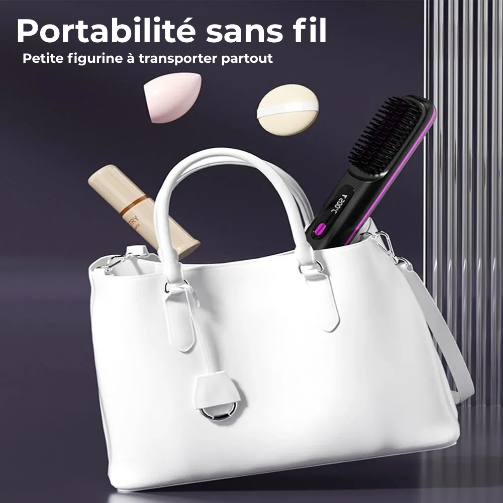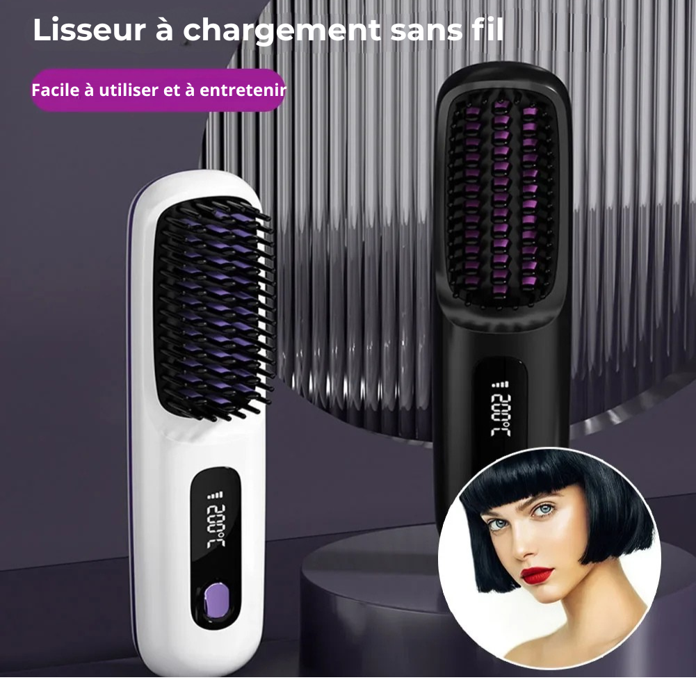 Vous en avez assez des fers encombrants, des câbles emmêlés et des cheveux ternes après le lissage ? Découvrez notre brosse lissante sans fil rechargeable, l’alliée parfaite pour un coiffage express, où que vous soyez !