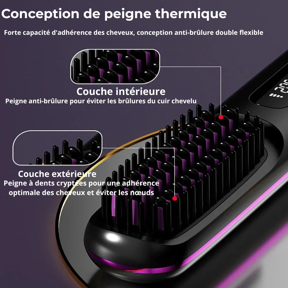 Peigne Lissant Électrique Sans Fil – Brosse Chauffante Céramique à Ions Négatifs avec Écran LCD, Rechargeable par USB
