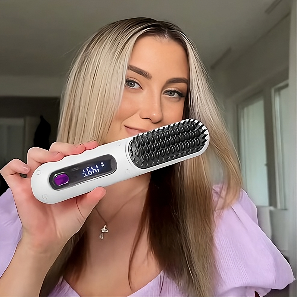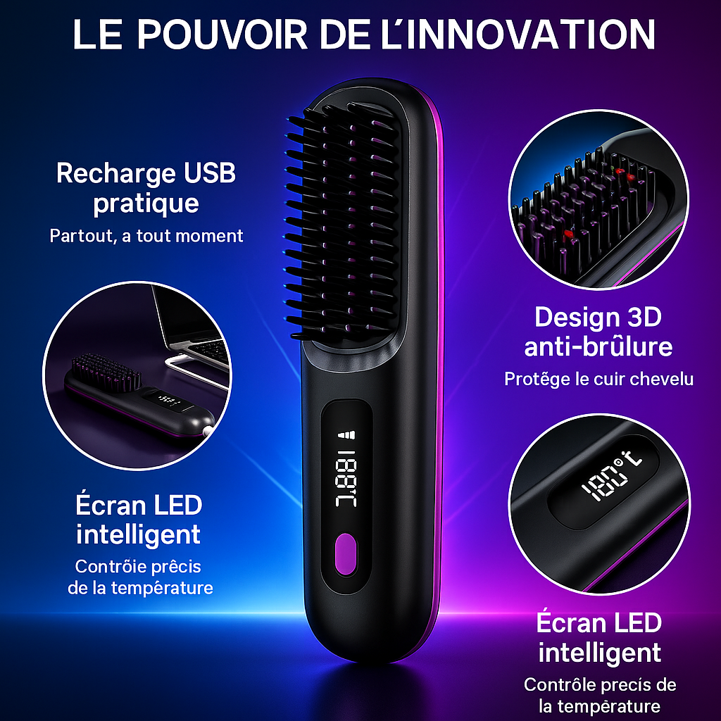 Découvrez comment HairLisse transforme votre routine capillaire avec sa brosse lissante sans fil — rapide, pratique et respectueuse de vos cheveux 💕
